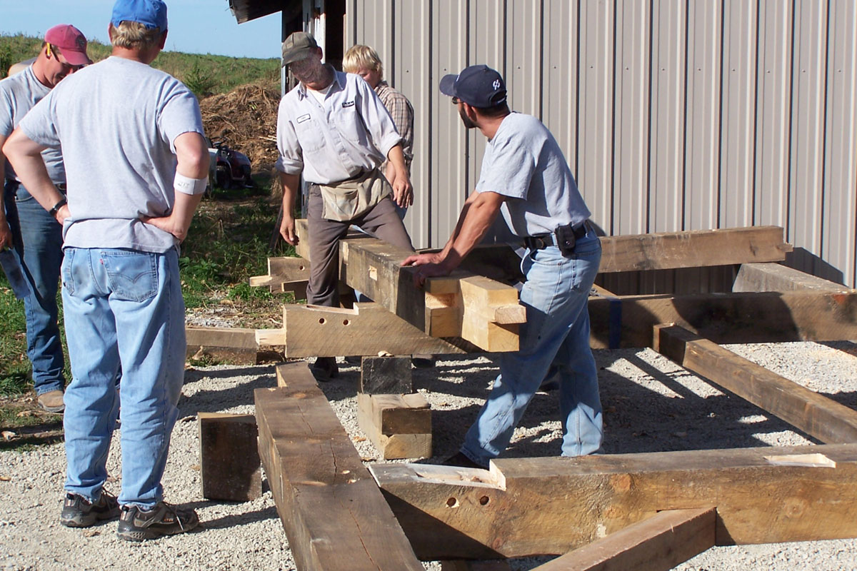People came and spent time helping and learning the old techniques used in the past to build these formidable timber-framed structures. Todd Juzwiak, from Wykoff, MN explained and demonstrated these techniques. Then, he handed people the old tools and put them to work on a mortise, tenon or joint of some kind. Everything had to be in the right place so when the time came to stand it all up it would go together.
